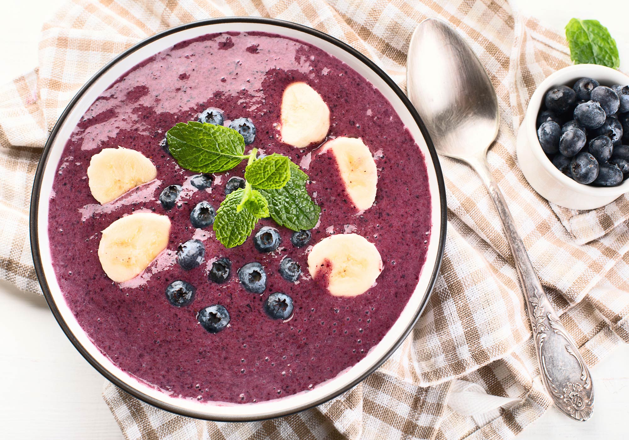 Photo: Blueberry Smoothie Bowl with spoon and small bowl of additional blueberries.