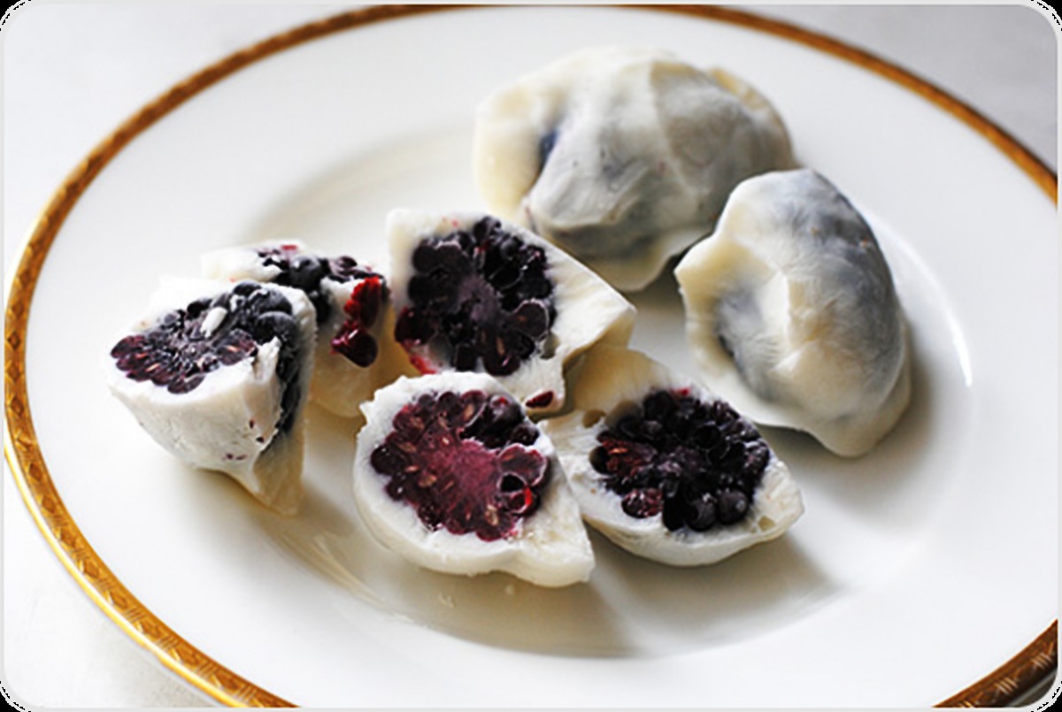 1. Whisk together Greek yogurt and honey in a large bowl. Individually dip the berries into the yogurt and transfer to a baking sheet lined with wax paper. Arrange the berries in a single layer. Once they're fully frozen, you can put them in any container you like and they won't stick together. Freeze the dipped fruit for six hours, or until frozen.