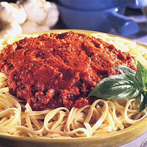4. To serve, top pasta with pepper sauce. Garnish with basil sprigs, if desired.