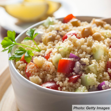 6. Layer couscous, top with chick peas, and enjoy!
