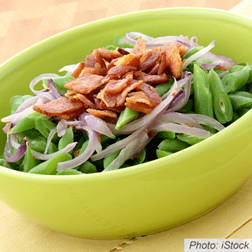 1. Clean, trim, and cut green beans into bite size pieces. Place them in a large mixing bowl.