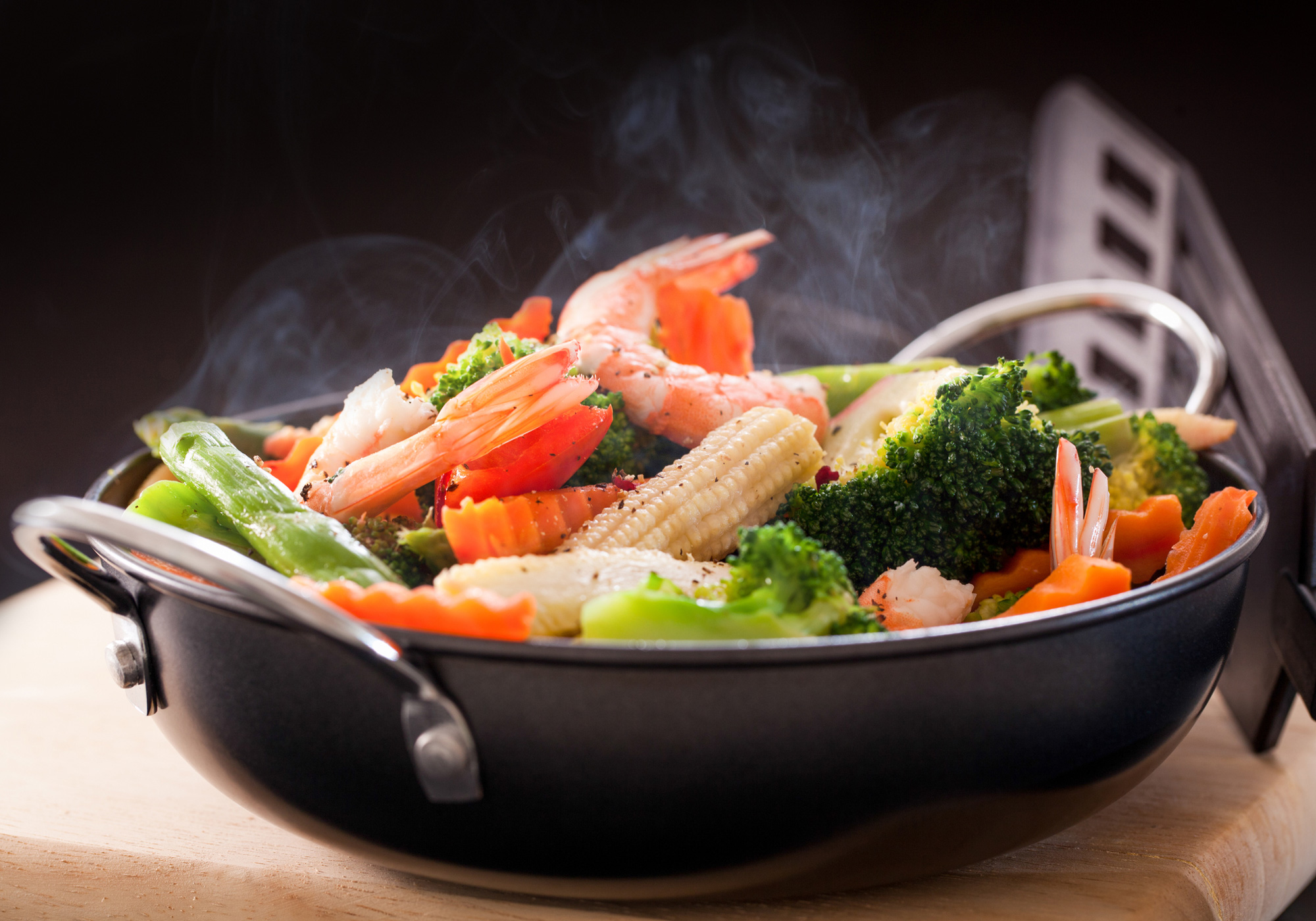 3. Handy Hint: To decrease cooking time, splash a tablespoon of water into the pan when you add the vegetables and cover with a lid. The water will steam the vegetables and you should cut cooking time down by 2 minutes. Remove the lid when you put the shrimp back in.