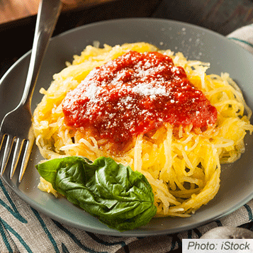 Swap out the noodles for spaghetti squash in this lower-carb pasta dish.