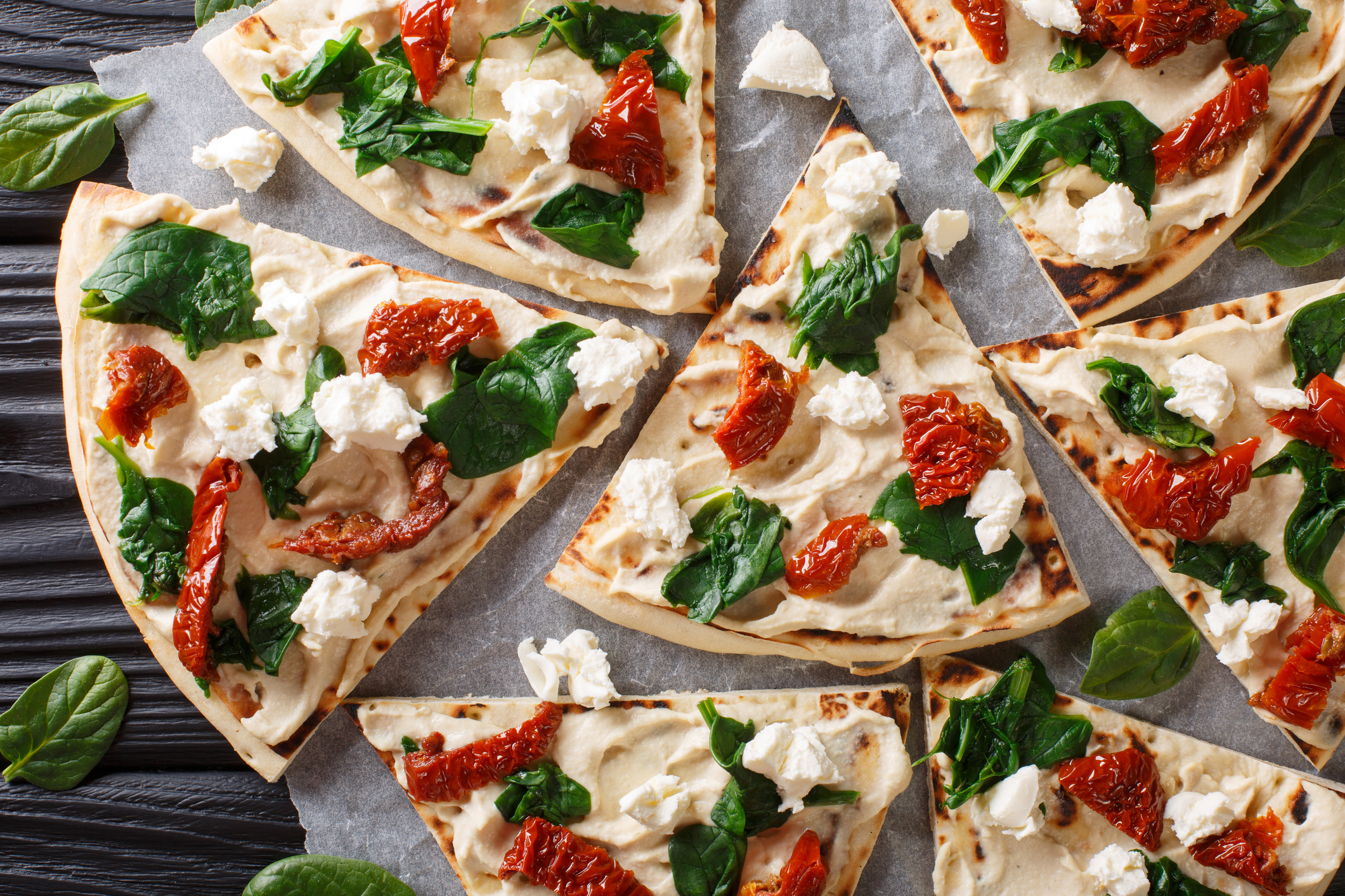 • Spread hummus on crust with the back of a spoon
