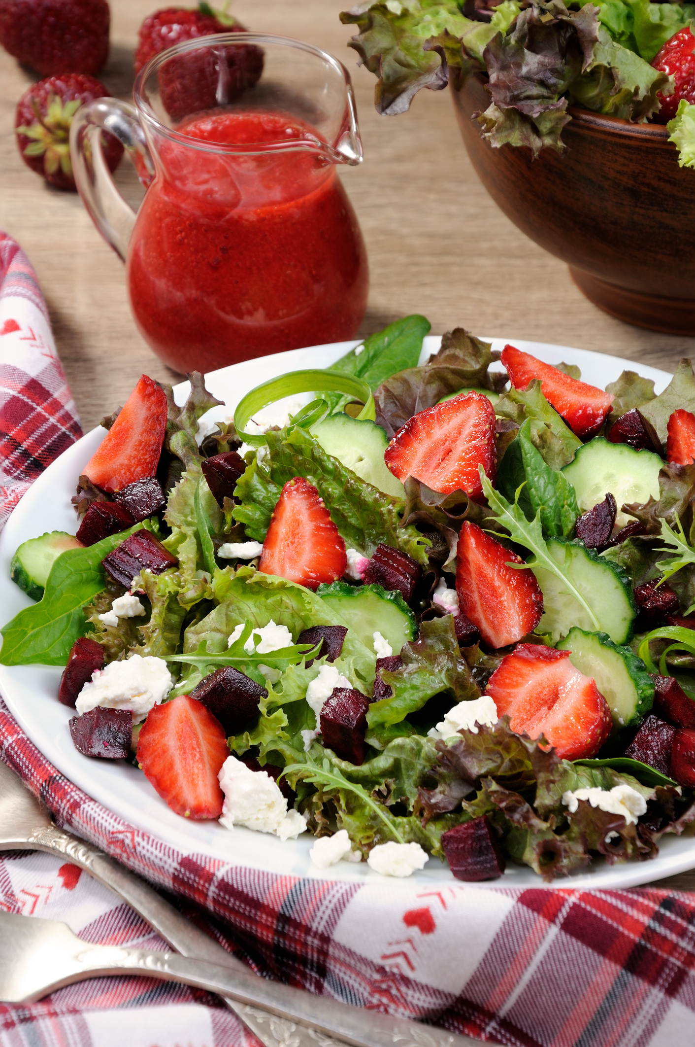 Salad of vinaigrette with strawberries