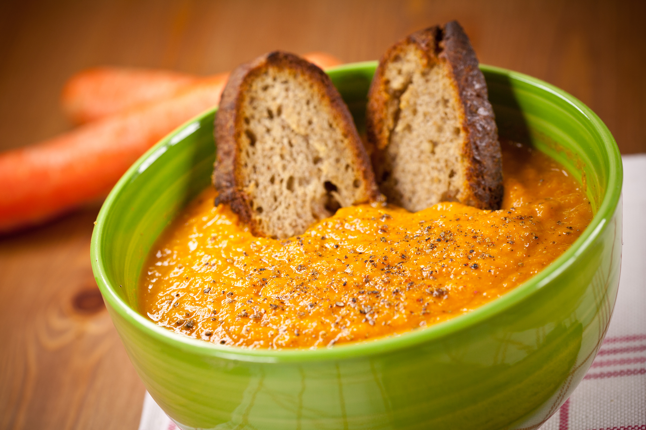Warm and comforting, this carrot-ginger soup with roasted vegetables brings together sweet, savory, and zesty flavors in a nourishing bowl.
